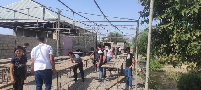 Bu gün Laçında erməni təxribatı nəticəsində şəhid olmuş əsgərimiz Kazımov Anar Rüstəm oğlunun Şəmkir rayonunun Qaracəmirli kəndində yerləşən evinin həyətində hüzr mərasimi üçün hazırlıq görülür.