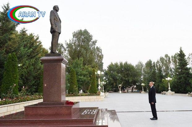 Prezident İlham Əliyev Ağsuda Heydər Əliyevin abidəsini ziyarət edib