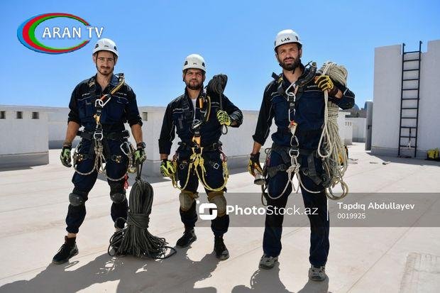 Bakının çoxmərtəbəli binalarından birinin zirvəsindəyik. Sənaye alpinizmində hava temperaturunun və küləyin önəmi böyükdür. Belə ki, küləyin sürəti saatda səkkiz kilometrə çatarsa, iş dayandırılır. İsti hava isə işi bir qədər də çətinləşdirir.
