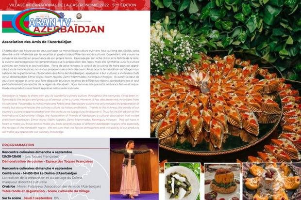 Azərbaycan 1-4 sentyabr tarixlərində Heydər Əliyev Fondunun, Azərbaycanın Fransadakı səfirliyinin, Azərbaycanın Dostları Assosiasiyasının (ADA), Paris Azərbaycan Evinin, AZPROMO-nun dəstəyi ilə Fransanın paytaxtı Parisdə keçirilən 5-ci beynəlxalq qastronomiya festivalında təmsil olunacaq.