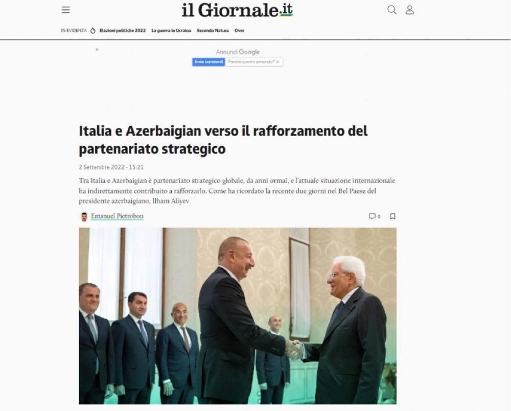 İtaliyanın aparıcı kütləvi informasiya vasitələri Azərbaycan Prezidenti İlham Əliyevin bu ölkəyə səfərini geniş işıqlandırıb.