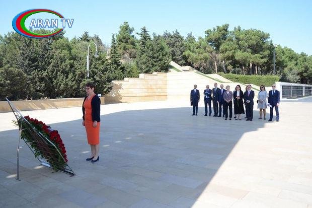 Azərbaycanda səfərdə olan Avropa Yenidənqurma və İnkişaf Bankının (AYİB) prezidenti xanım Odil Reno-Bassonun rəhbərlik etdiyi nümayəndə heyəti Şəhidlər xiyabanını ziyarət edib, Azərbaycanın müstəqilliyi və ərazi bütövlüyü uğrunda canlarından keçmiş qəhrəmanlarımızın xatirəsini ehtiramla yad edib. AYİB nümayəndə heyəti həmçinin İçərişəhərlə tanış olub.