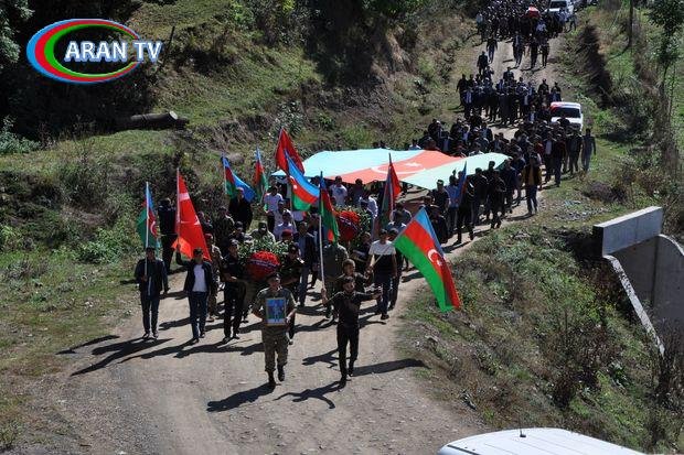 Şəhidin ruhuna dualar oxunub, məzarı üstünə əklillər qoyulub.