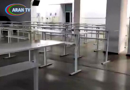 Bakı şəhərində fəaliyyət göstərən universitetlərin birinin bufetində stullar yığışdırılıb.
