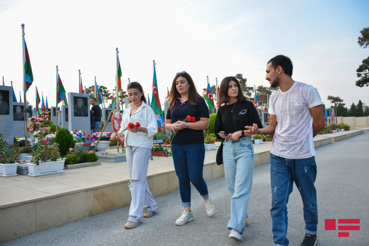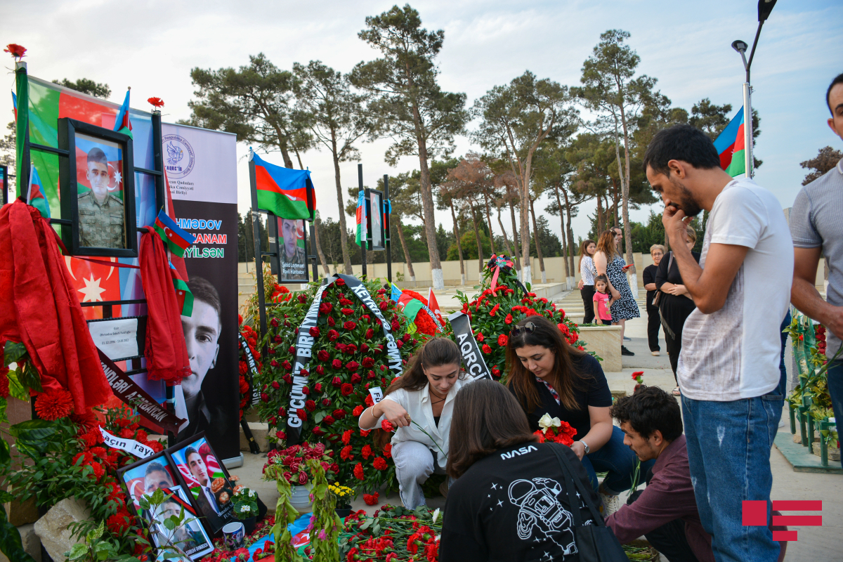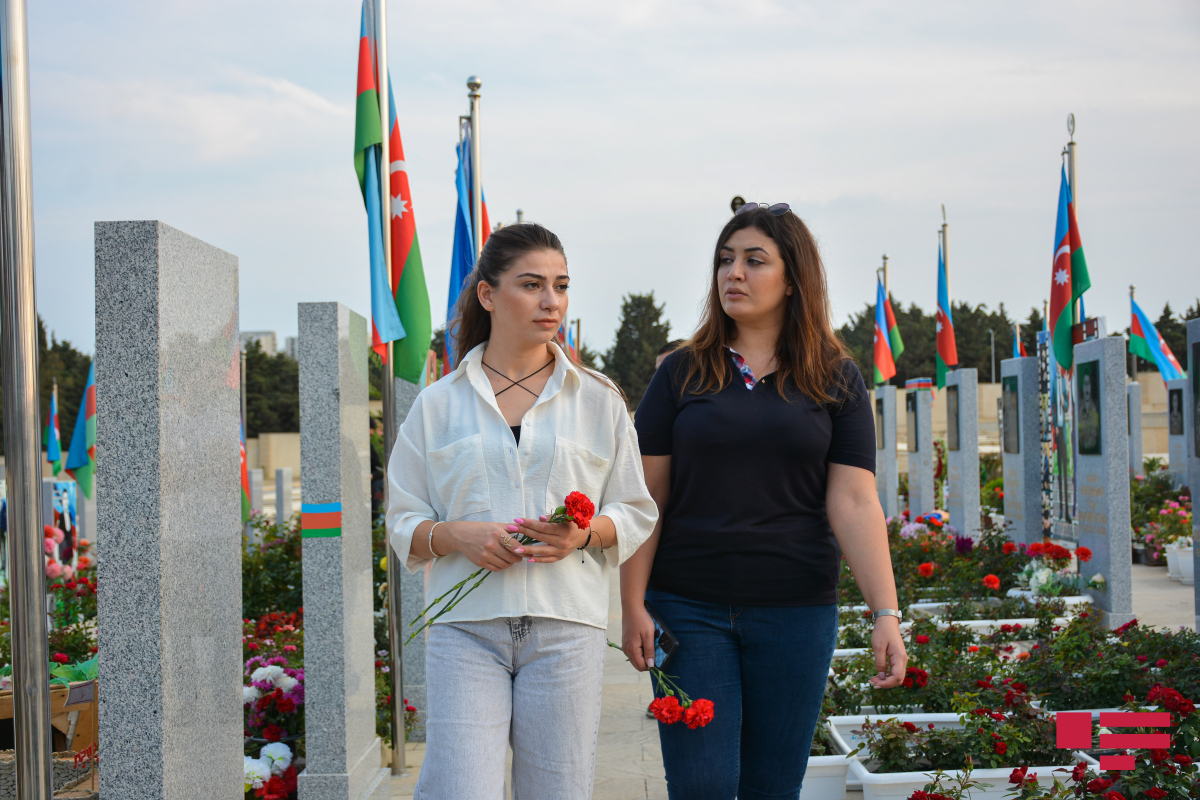 Hər yer bayraqdı, hər yer bizə baxan şəhid məzarlarıdı… Çoxlu gənc analar diqqətimizi çəkir…