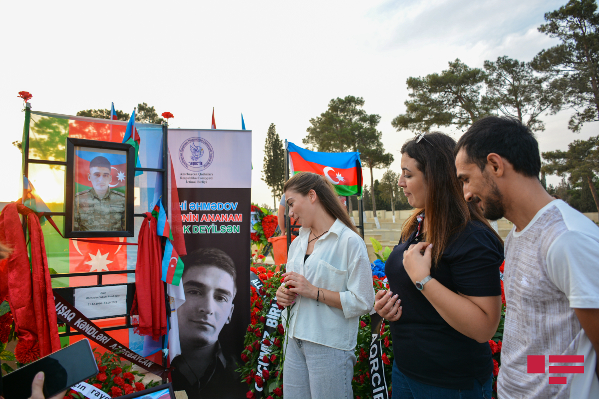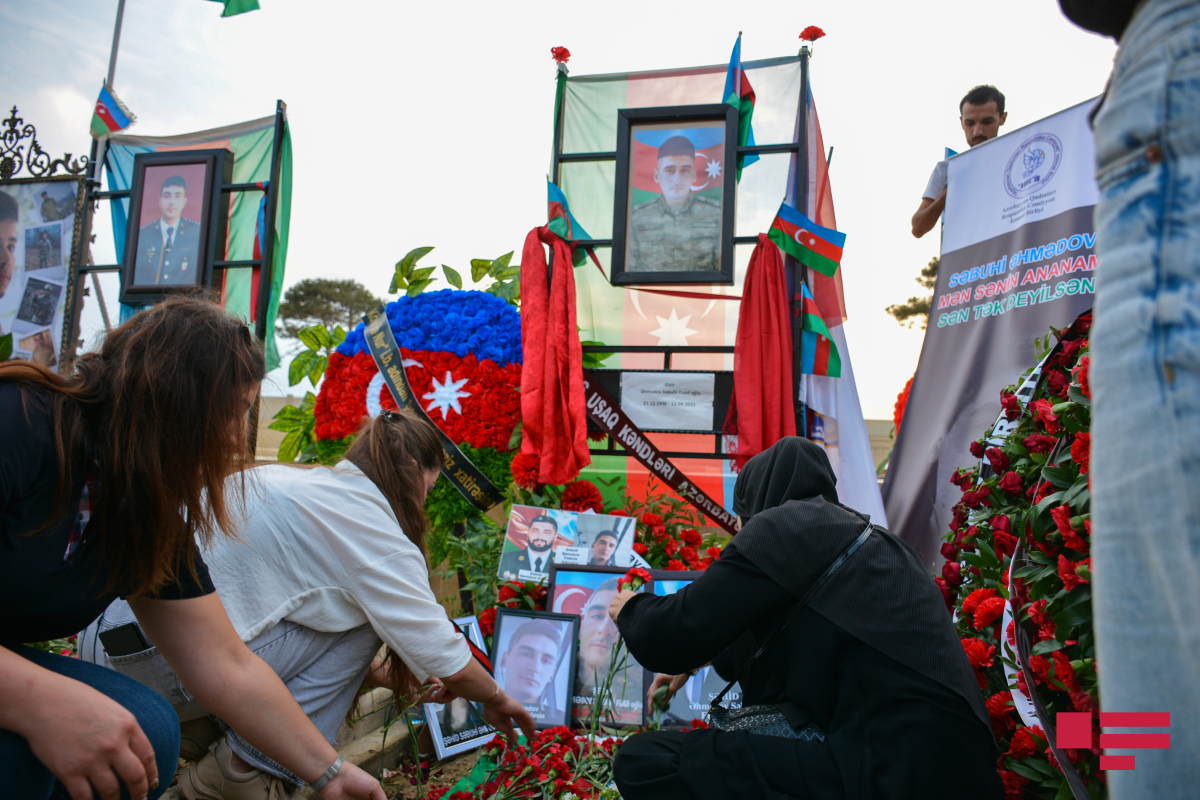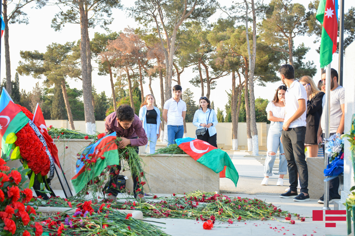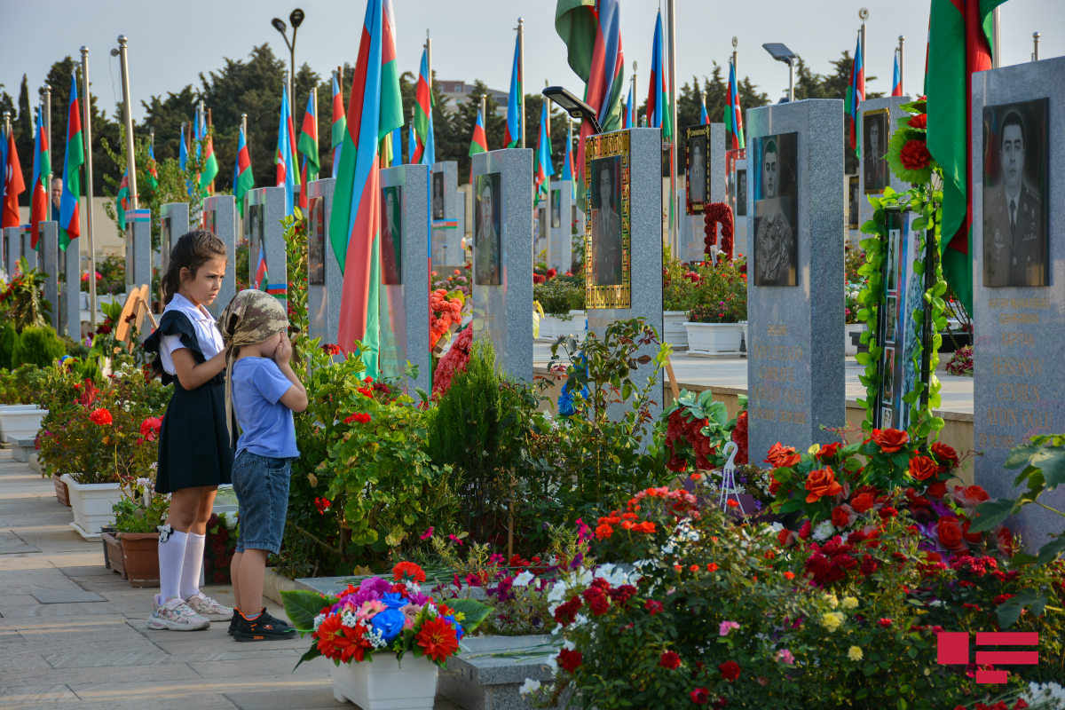 Hər yer bayraqdı, hər yer bizə baxan şəhid məzarlarıdı… Çoxlu gənc analar diqqətimizi çəkir…