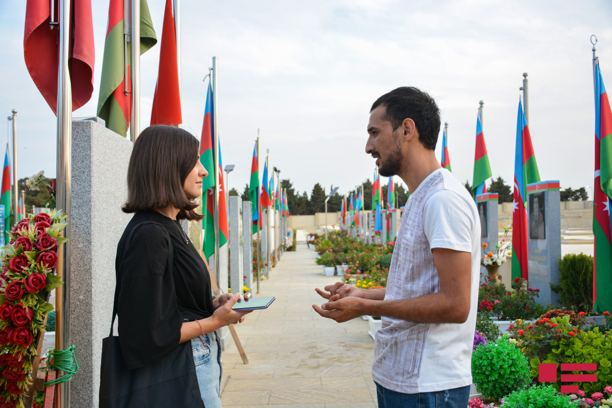 Məzarların üzərini təmizləyən gənc oğlan maraqlı gəldi. Ona yaxınlaşdıq və burda işlədiyi haqqında soruşduq. Könüllüymüş. Bir az titrəyən səsi ilə mənimlə danışmağa başlayır…