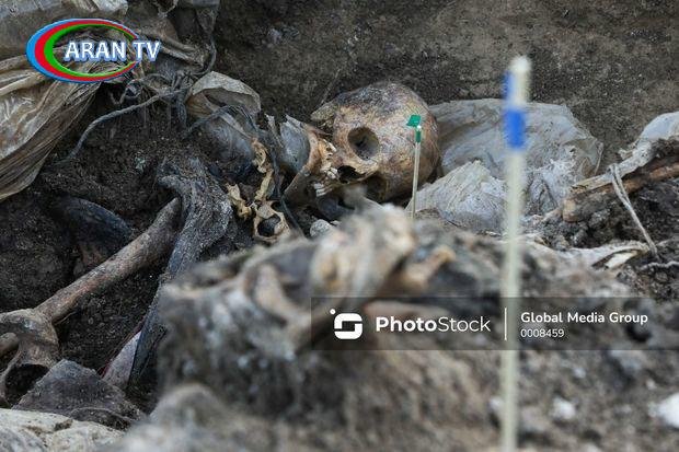 “Qazıntı işləri aparılıb, 12 şəxsin meyiti aşkarlanıb, bu 12 şəxs ilk baxışdan da aydın olduğu kimi Azərbaycan hərbi qulluqçularının meyitləridir. Onlar hamısı paltarla dəfn olunub. Onlardan aşağıda meyit var, ya yoxdur, hələlik məlum deyil. Amma hələlik üzdə olan 12 meyitdir”,- Ə.Həsənov deyib.