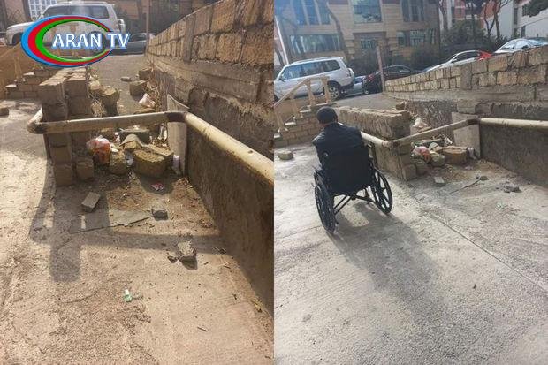 Dərnəgüldə yaşayış binalarının yanında sağlamlıq imkanları məhdud şəxslər üçün düzəldilmiş yolu bağlayıblar.