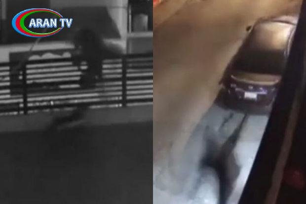 Görüntülərdə yerə yıxılan oğrunun xəsarət aldığı və sürünərək ərazidən uzaqlaşdığı əks olunub.
