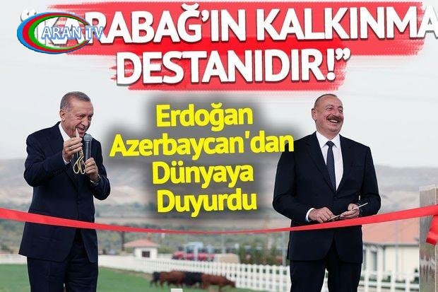 “Azərbaycan torpaqları sanki küllərindən təmizlənərək ayağa qalxır. Açılışını etdiyimiz Zəngilan Beynəlxalq hava limanı Azərbaycanın qəhrəmanlıq dastanından sonra Qarabağın dirçəliş dastanının yazılmasının bariz nümanəsidir”, – deyə Ərdoğan bildirib.
