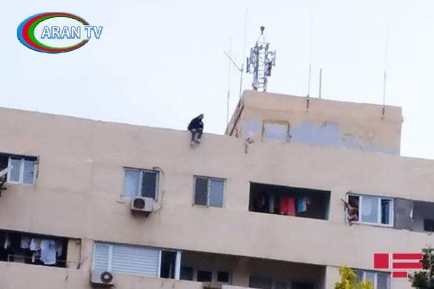 Hələki kimliyi müəyyən olunmayan bir nəfər “14 mərtəbə” kimi tanınan binanın damına çıxaraq özünü atmaq istəyir.