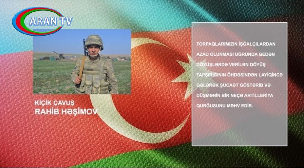 • Kiçik çavuş Rahib Həşimov döyüş tapşırığını layiqincə yerinə yetirərək düşmənin bir neçə artilleriya qurğusunu məhv edib.