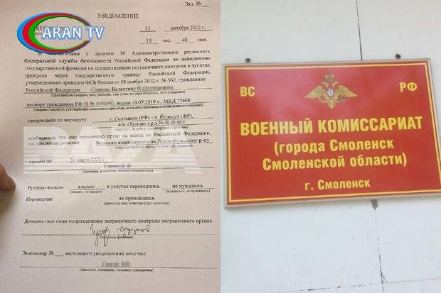 Bu halda gənc Rusiyanın Sortaval şəhərindən keçməklə ölkədən çıxmağa cəhd edib. Lakin gözlənilmədən Smolensk vilayətinin hərbi qeydiyyat və komissarlığı tərəfindən ona bildiriş təqdim olunub. Bildirişdə gəncə 31 mart 2222-ci ilə qədər ölkəni tərk etməyin qadağan olunduğu qeyd edilib.