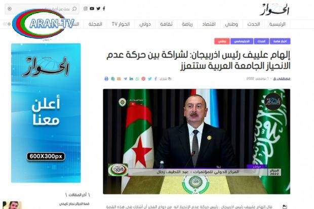Misir və Küveyt mediası da Azərbaycanın dövlət başçısının Ərəb Sammitində çıxışına geniş yer ayırıb. “Əl Nahar”, Əl Vatan”, “Əxbar Əl Yom”, “Cümhuriyyə” qəzetlərində, habelə “Youm7”, “Dasmannews” portallarında dərc olunmuş “Qoşulmama Hərəkatının Sədri işğal dövründə ərəblərin onun ölkəsini dəstəklədiyini bildirib” sərlövhəli materiallarda dövlətimizin başçısının çıxışından əsas məqamlar yayımlanıb. Xəbərlərdə diqqətə çatdırılıb ki, Sammitdə Qoşulmama Hərəkatının sədri qismində Fəxri qonaq kimi iştirak edən Prezident İlham Əliyev aktual qlobal məsələlərə öz münasibətini bildirib. İşğalı və beynəlxalq siyasətdə ikili standartları pisləyən Azərbaycan Prezidenti qeyd edib ki, Fransa 130 ilə yaxın Əlcəzairi işğal altında saxlayıb və onun ölkəsi də Ermənistanın işğalına məruz qalıb. Bu illər ərzində ərəb və İslam dövlətlərinin Azərbaycanın ədalətli mövqeyini dəstəklədiyini qeyd edən İlham Əliyev bildirib ki, Azərbaycan BMT-nin Nizamnaməsi əsasında özünümüdafiə hüququndan istifadə edərək öz ərazilərini azad edib və hazırda həmin torpaqlarda bərpa və tikinti işləri aparılır.