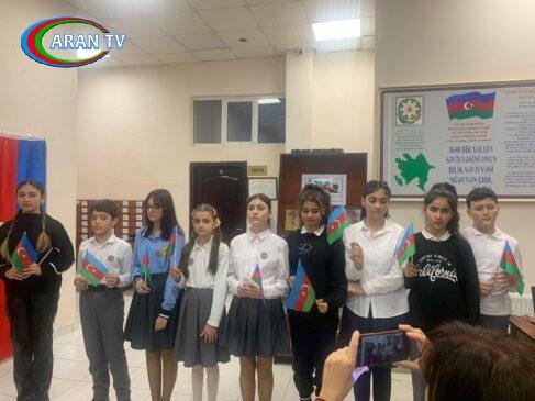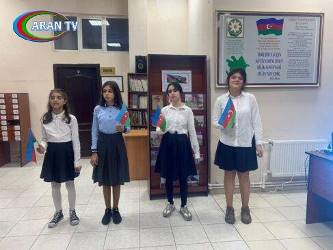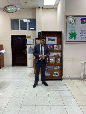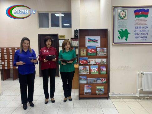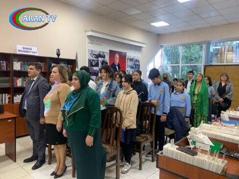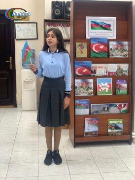 Sonra kitabxananın əməkdaşları T.Məmmədova, S.Abbasova və V.Ağamalıyeva bayraq haqqında 4 dildə məlumat veriblər və milli kimliyimizin, mədəniyyətimizin, milli ideologiyamızın ifadəsi olan müqəddəs bayrağımız barədə videoçarx qonaqlara təqdim olunub.