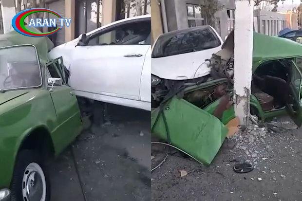 Gəncədə ağır qəza: “Hyundai” yol kənarında dayanmış VAZ-a çırpıldı – VİDEO