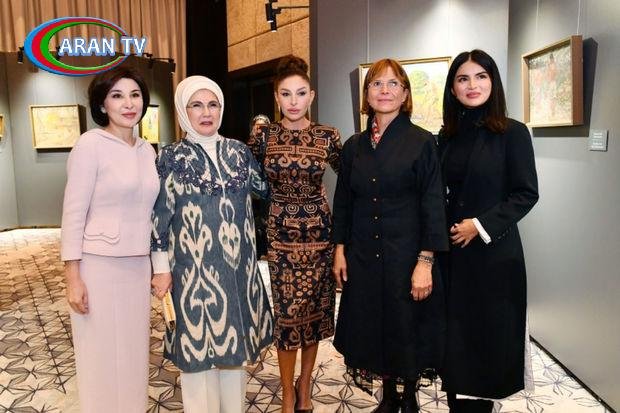 AZƏRTAC xəbər verir ki, Azərbaycanın Birinci vitse-prezident Mehriban Əliyeva, Özbəkistanın birinci xanımı Ziroatxon Mirziyoyeva, Türkiyə Respublikasının birinci xanımı Əminə Ərdoğan, Macarıstanın Baş nazirinin xanımı Aniko Levai birlikdə sərgiyə baxıblar.