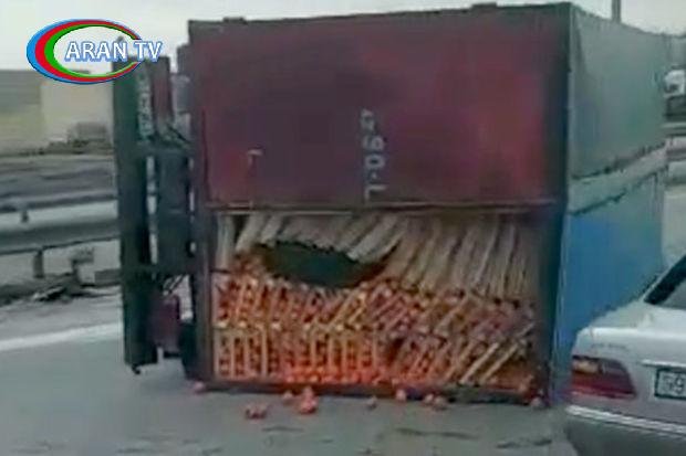 Bakı-Ələt yolunda meyvə daşıyan yük avtomobili aşıb.