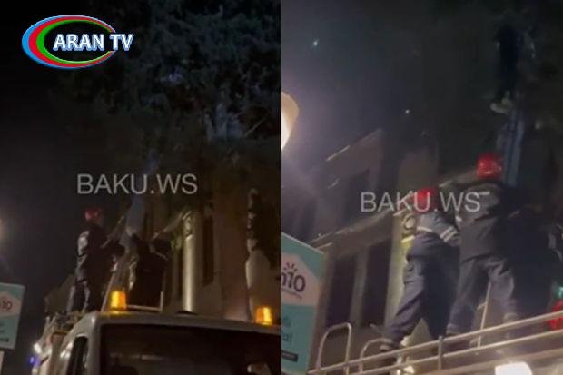 Bakıda qeyri-adi hadisə: Pişiyi düşürmək istədi, özü ağacda qaldı – VİDEO