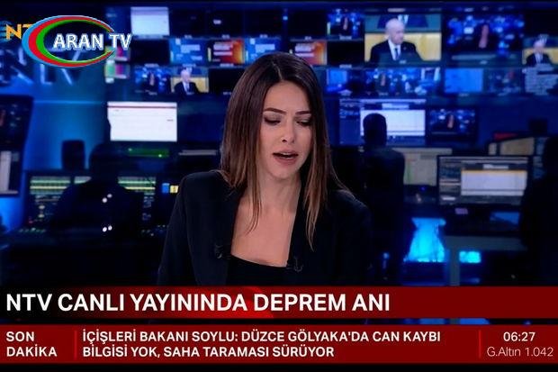 Türkiyənin NTV kanalı Düzcə vilayətində baş verən zəlzələ zamanı canlı yayımda olub. Yeraltı təkanlar studiyada da şiddətli şəkildə hiss edilib.