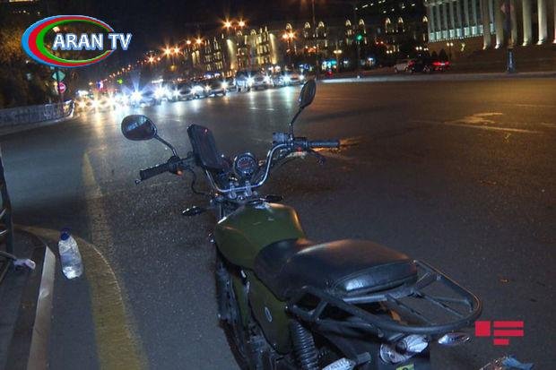 Zərbənin gücündən motosikletçi yıxılaraq başından ağır xəsarət alıb.
