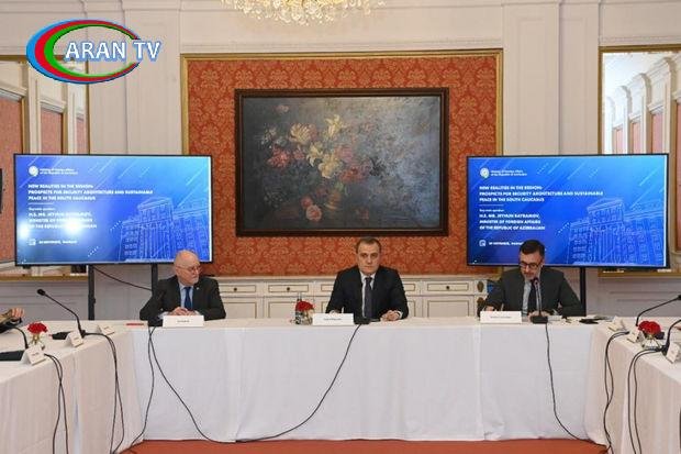 Nazir Ceyhun Bayramov çıxış zamanı Azərbaycanın xarici siyasət prioritetləri, Vətən müharibəsindən sonra bölgədə yaranmış yeni reallıqlar nəzərə alınmaqla bölgədə sülh və əmin-amanlığın təmin edilməsi istiqamətində səyləri barədə ətraflı məlumat verib. Nazir, eyni zamanda Ermənistanla sülh gündəliyi üzrə təkliflər, aparılan danışıqlarda Azərbaycanın mövqeyi və yanaşması barədə iştirakçıları məlumatlandırıb.