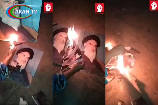 İranın Təbriz şəhərində yerləşən kazarmalardan birində əsgərlər Xomeyni və Xameneinin şəkillərini yandırıblar.