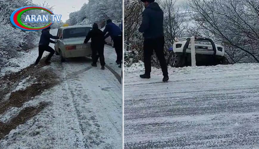 Görüntülərdən aydın olur ki, buz bağlamış asfalt maşınların hərəkətini demək olar ki, məhdudlaşdırıb. Hətta bəzi avtomobillər sürüşərək yoldan çıxıb.