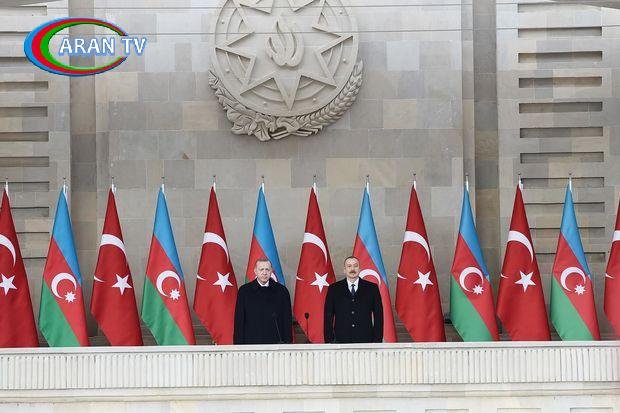 Azərbaycan Respublikasının Prezidenti İlham Əliyev, Birinci vitse-prezident Mehriban Əliyeva, Türkiyə Respublikasının Prezidenti Rəcəb Tayyib Ərdoğan və xanımı Əminə Ərdoğan həmin paradda iştirak ediblər.