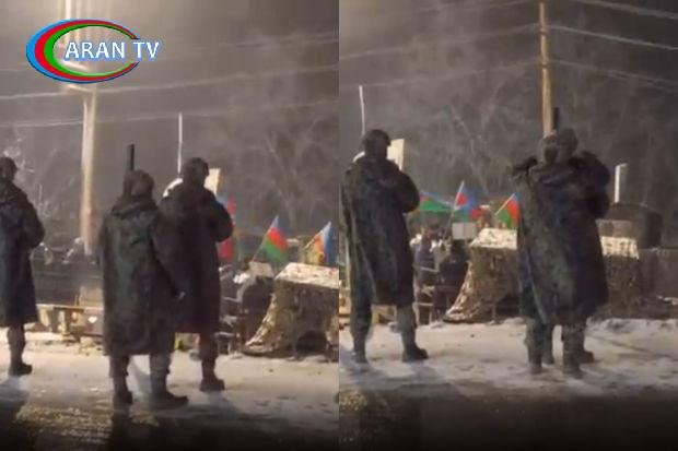 Şuşa-Xankəndi yolunda keçirilən etiraz aksiyaları zamanı Azərbaycan hərbçisindən qəlbləri isidən görüntülər lentə alınıb.