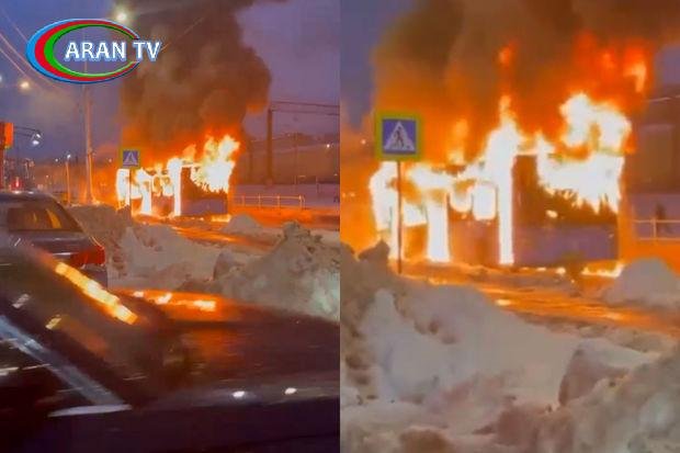 Moskvada sərnişin avtobusu od tutub yandı – ANBAAN VİDEO