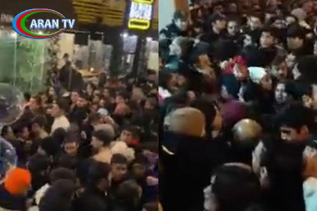 Sosial şəbəkədə yayılan görüntülərdən izdiham zamanı uşaqların çətin vəziyyətə düşməsi, insanlar arasında gərginlik yaşanması görünür.