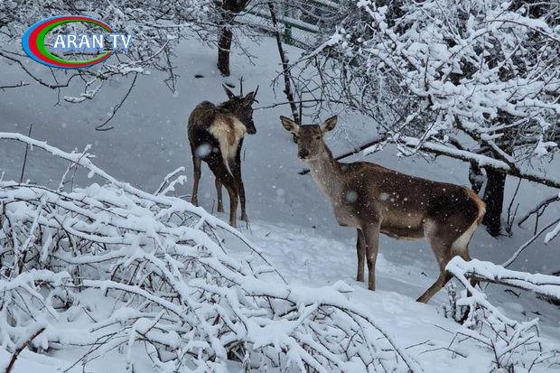 ARANTV.AZ xəbər verir ki, qarlı havada zubrlar, marallar mənzərəyə əlavə gözəllik qatır.