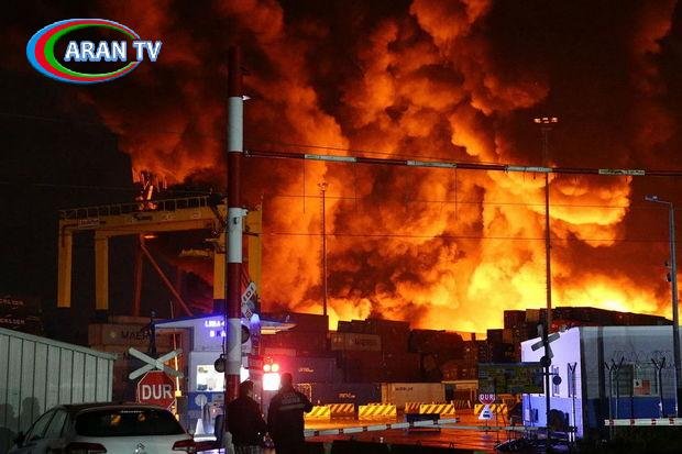 Türkiyədə baş verən dağıdıcı zəlzələdən sonra İskəndərun limanında baş verən yanğın davam edir.