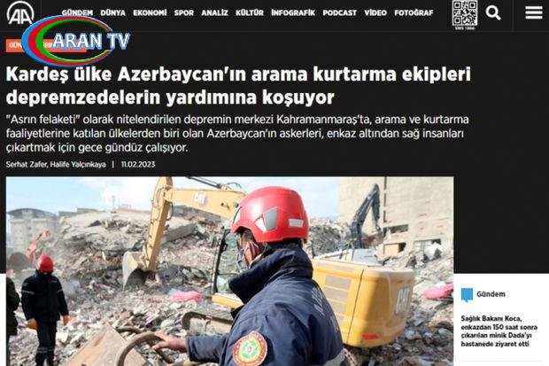 Anadolu Agentliyi azərbaycanlı axtarış-xilasetmə qruplarının zəlzələ baş vermiş bölgələrdə gecə-gündüz çalışmaları davam etdirdiyini yazır. Məqalədə, həmçinin azərbaycanlı axtarış-xilasetmə qruplarının nümayəndələrindən müsahibələri yer alıb. Onlar xilas etdikləri uşaqları öz uşaqları kimi gördüklərini, yaralıları canla başla həyata bağlamağa çalışdıqlarını deyiblər.