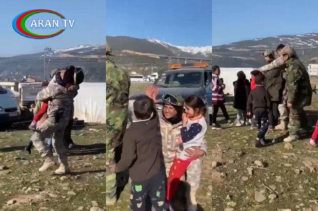 Türkiyə hərbçiləri zəlzələ bölgəsində qurulan çadır şəhərciyində uşaqları ziyarət ediblər.