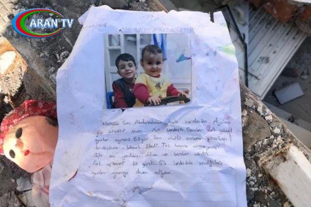 Türkiyənin Adıyaman şəhərində dağıntılar altında həyatını itirən iki azyaşlı qardaşın xatirə dəftəri aşkar edilib.