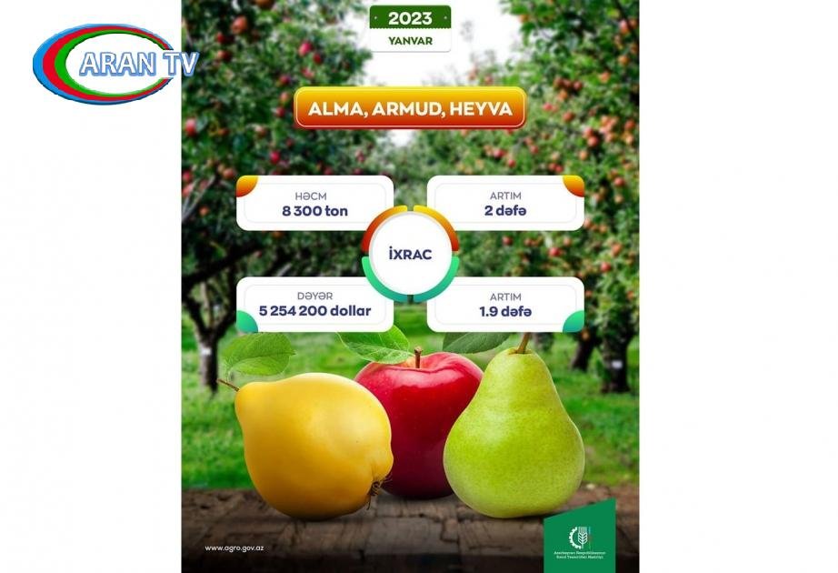 Bu ilin yanvar ayında Azərbaycandan 8300 ton həcmində alma, armud və heyva ixrac olunub.