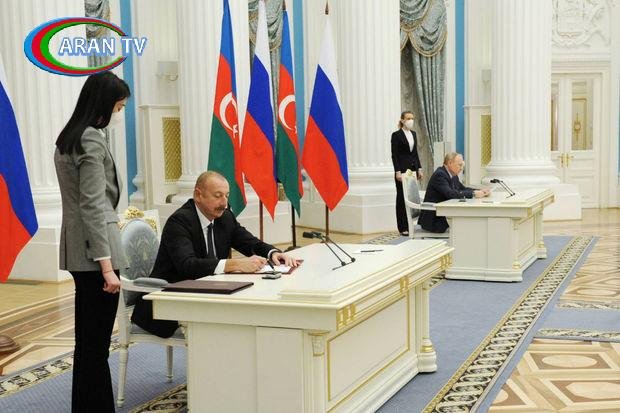 ARANTV.AZ xəbər verir ki, sənədi Azərbaycan Respublikasının Prezidenti İlham Əliyev və Rusiya Federasiyasının Prezidenti Vladimir Putin imzalayıblar.