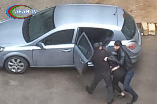 Görüntülərdə 3 nəfərin qızı zorla “Opel” markalı avtomobilə mindirdiyi görünür.