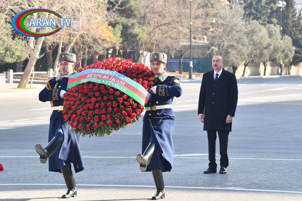 AZƏRTAC xəbər verir ki, Prezident İlham Əliyev Xocalı soyqırımı abidəsinin önünə əklil qoydu, faciə qurbanlarının xatirəsini ehtiramla yad etdi.