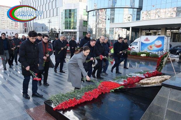 Bildirilib ki, Dövlət Neft Şirkətinin kollektivi abidə önünə gül dəstələri düzərək faciə qurbanlarının xatirəsinə ehtiram nümayiş etdirib.