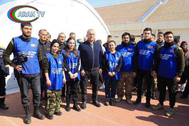 Türkiyənin xarici işlər naziri Mövlud Çavuşoğlu Kahramanmaraşda zəlzələdən zərərçəkənlər üçün salınmış çadır şəhərciyində könüllü kimi çalışan Azərbaycan gənclərinin bir qrupu ilə görüşüb.