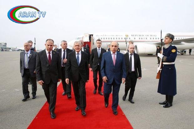 İraq Prezidentini Azərbaycanın Baş nazirinin birinci müavini Yaqub Eyyubov, xarici işlər nazirinin müavini Fariz Rzayev və digər rəsmi şəxslər qarşılayıblar.