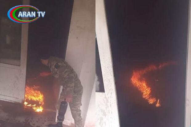Həmin videoda bir nəfərin inzibati binanın döşəməsini yandırdığı görünür.