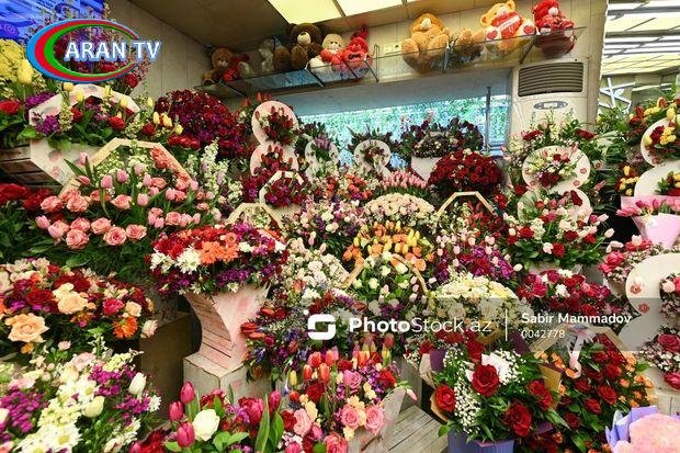 Dükanlarda sıxlıq müşahidə olunur, əlamətdar gün ilə əlaqədar simvolik buketlər də hazırlanıb. İnsan əlindən tərpənməyə yer yoxdur. Hər kəs sevdiyi üçün gül almağa tələsir. Hətta bir yox, bir neçə buket alıb aparanlar da var.