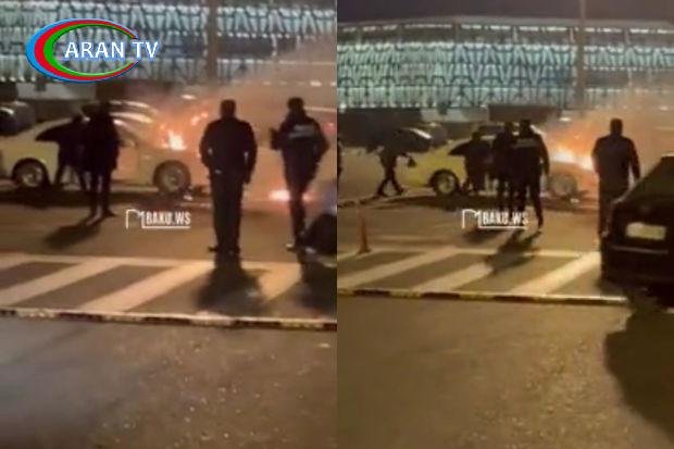 Bakıda aeroportda maşın yandı – VİDEO
