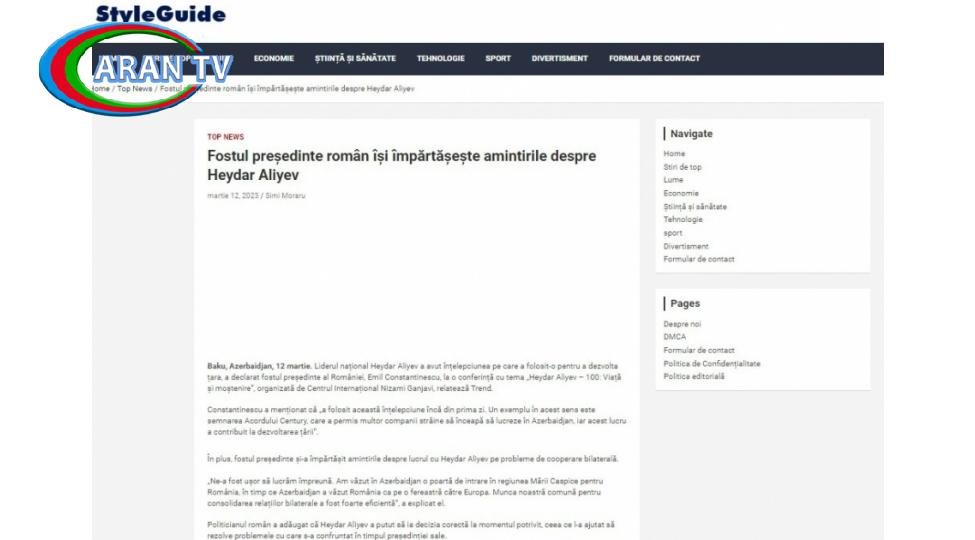 Rumıniyanın “Style Guide” portalı Qlobal Bakı Forumunda iştirak edən sabiq Prezident Emil Konstantineskunun Ümummilli Lider Heydər Əliyev barədə fikirlərini yayıb.