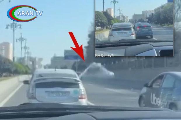Belə ki, sürücülərdən biri digərinə su atıb. Bundan sonra digər avtomobilin sürücüsü “Prius”un qarşısını kasərək qəfil əyləci basıb. Beləliklə onlar yolla hərəkət edən digər maşınlar üçün ağır qəza şəraiti yaradıblar.